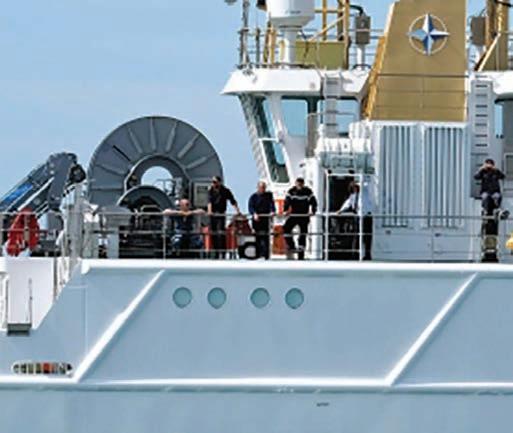 relitti aeronavali del Secondo conflitto mondiale oppure la partecipazione al l’esercitazione Mare Aperto 2022 nelle acque antistanti la Sardegna meridionale dove il Leonardo ha operato come piattaforma di supporto e gestione dei mezzi autonomi di Maricodrag, in uno scenario operativo e integrato con le altre forze di cacciamine. Oltre il co mandante e l’ufficiale in seconda, l’equi paggio è composto da 7 persone tra sottufficiali e graduati di cui tre nocchieri per le manovre marinaresche, tre tra motoristi ed elettricisti per le manu tenzioni della piattaforma e un maestro di cucina e mensa. Abbiamo incontrato il comandante, il tenente di vascello Marco Cimino, e gli abbiamo chiesto come è andata l’ultima attività svolta: “Tra il 21 e il 25 Giugno,
