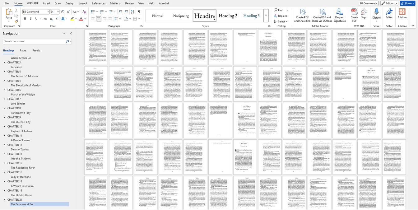 From 2022 to 2025, I focused on converting my vision to reality. Creating and organizing chapters, I confined my plot to a sequential timeline, which was crucial in ensuring that I didn’t overwrite. For each chapter, I created a checklist that covered events I had to include. Upon completing a chapter, I would proofread—ofentimes by reading aloud to see how natural it sounded —andthenreviewforformattingissues.