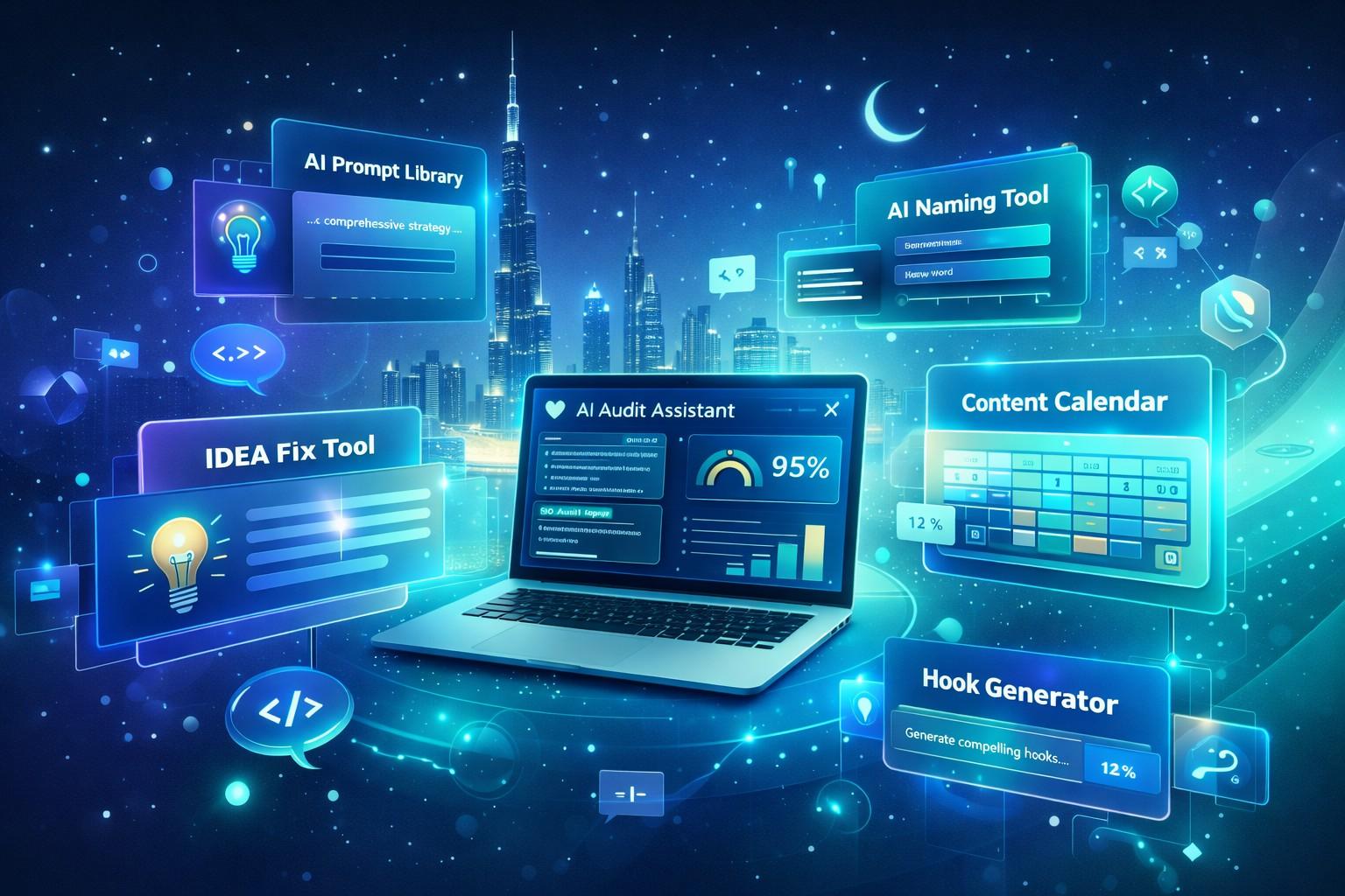 The Tools page brings prompts, calculators, audits and planners into one hub built for Dubai and UAE teams.