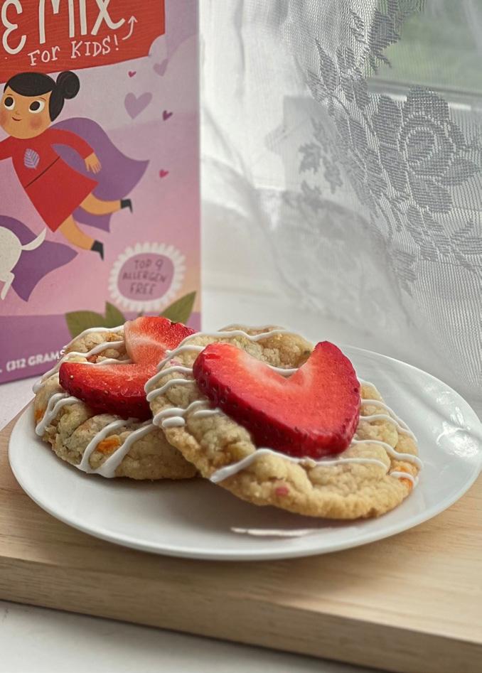 Make your cookies extra special with a sweet frosting layer. Simply whisk together 2 cups of powdered sugar, ½ cup butter or vegan “butter,” 2 tablespoons non-dairy milk, and 1 teaspoon vanilla. Spread or drizzle on cookies and top with a heart-shaped strawberry.