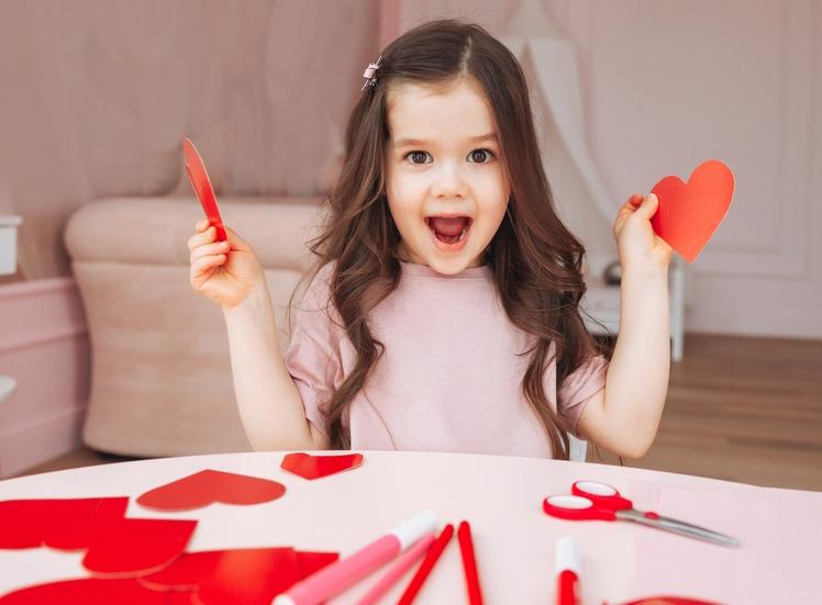 1. Make a card — use the paper roll hearts to stamp onto Valentine’s Day cards! You can stamp onto a full sheet of cardstock and then fold in half to make a card.