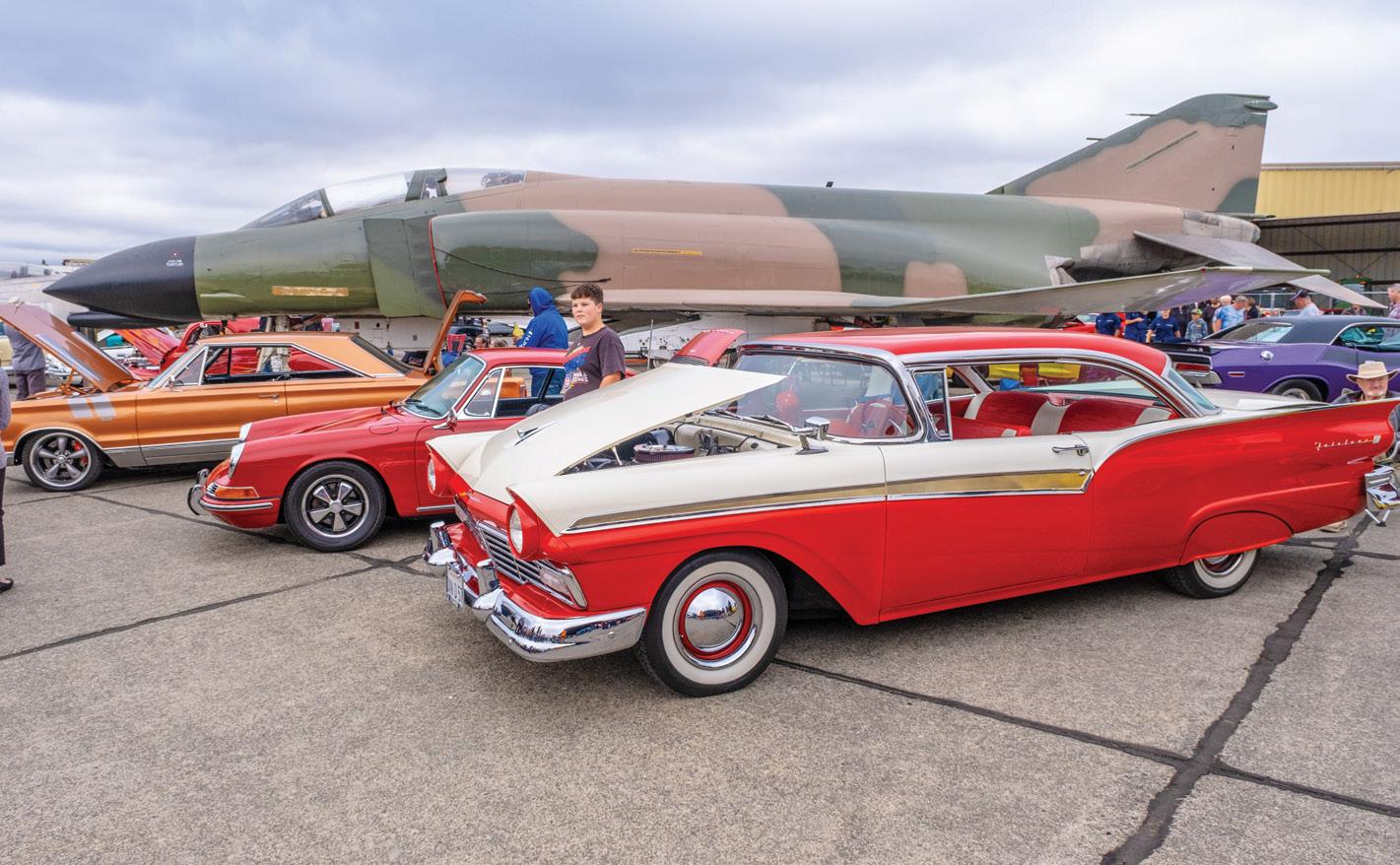 A unique gathering of meticulously restored classic and muscle cars from every era and description. The cars are parked right next to some of the museum’s high performance historic aircraft