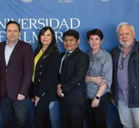 TÍTULOS PARA HISPANOAMÉRICA. En la página anterior participación de la UAL en una feria de Universidades en Colombia, reunión de la UAL con las universidades Nacional de Educacion Enrique Guzman y Valle de Perú, Universidad de Ciencias Médicas de Cienfuegos de Cuba, y Universidad de Cuenca en Ecuador, todas ellas para establecer vías de colaboración académica y de investigación. En esta página arriba responsables del Máster en Terapias Contextuales de la Universidad de Almería. A la derecha el vicerrector de Posgrado de la UAL Juan García, y visita de los vicerrectores Diego Valera y Julián Cuevas a El Salvador.