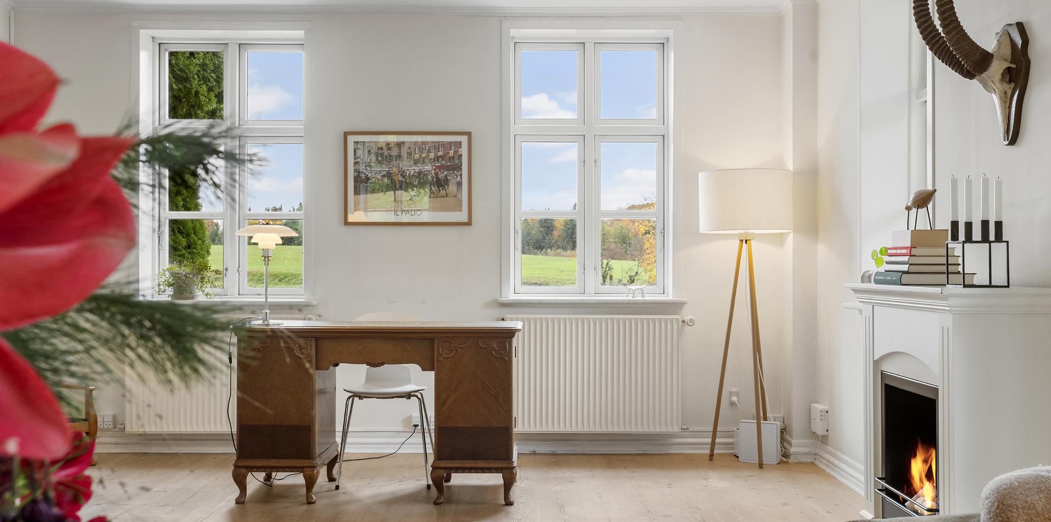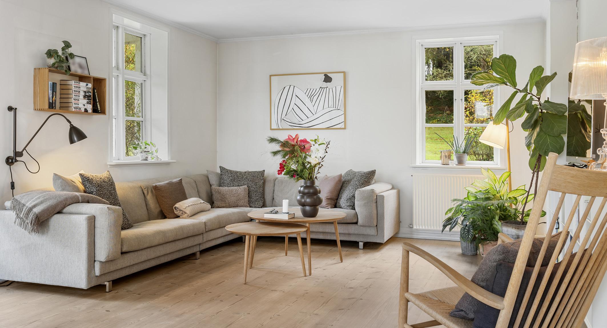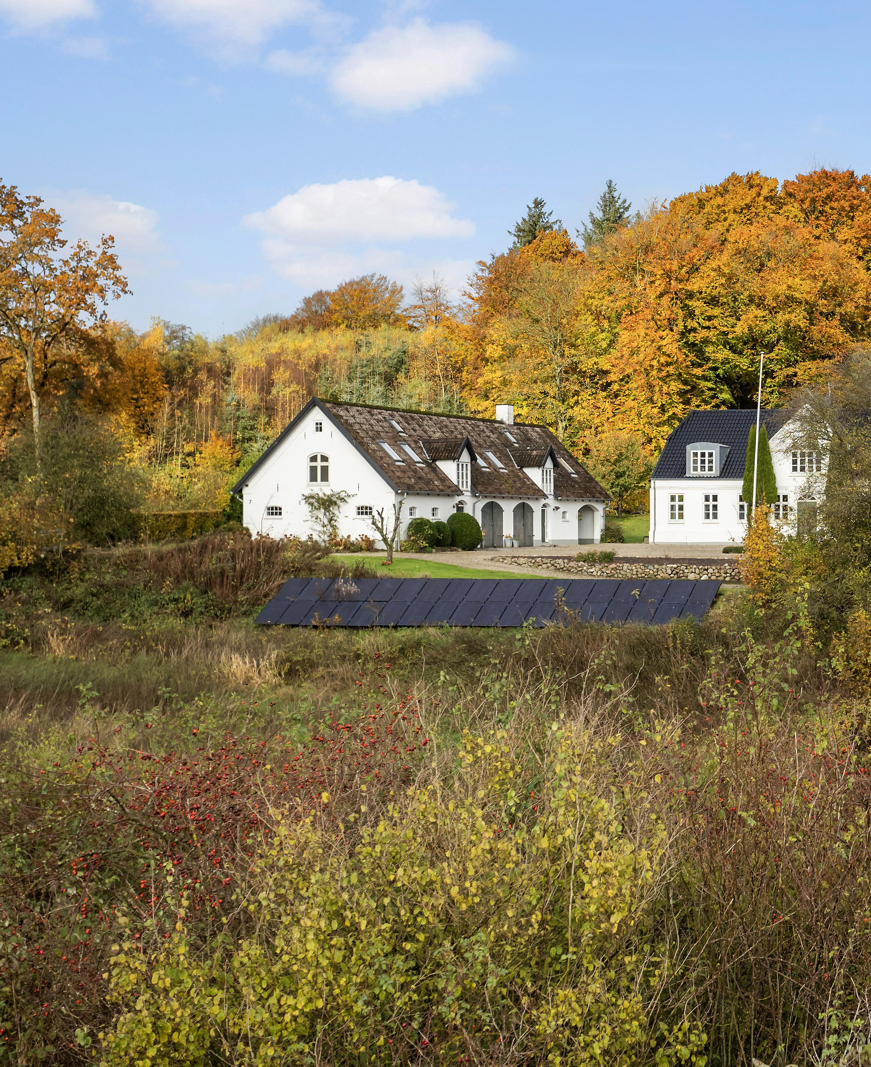 Der findes steder, hvor tiden synes at bevæge sig langsommere – hvor naturens rytme får lov til at bestemme tempoet, og hvor alt omkring én taler et roligt, lavmælt sprog. Denne ejendom er et sådant sted. Omgivet af bøgeskovens dybe grønne toner, der skifter karakter i løbet af året, og engens bløde farvespil, ligger villaen som et vidnesbyrd om klassisk dansk byggeskik. Et hjem, der siden sin opførelse i 1868 har forandret sig med tiden, men aldrig mistet sin sjæl.