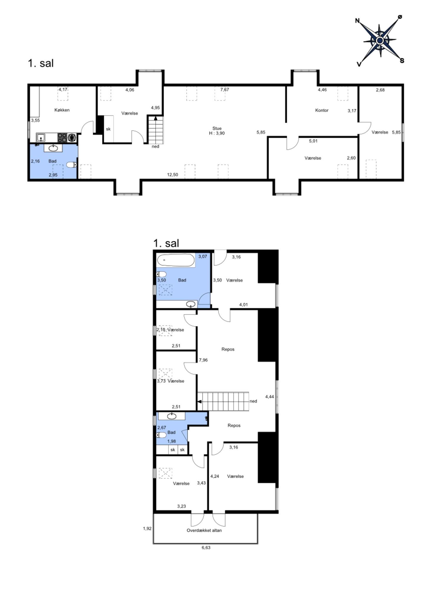 Boligen rummer i alt 255 m² fordelt på to etager, og planløsningen er lige så praktisk som den er æstetisk. I stueplan finder man de store opholdsrum – et imponerende køkken i moderne fortolkning med mørkegrønne fronter, messingdetaljer og ”Dekton” bordplader i sten, en elegant spisestue med franske døre og indbyggede ”Pevino” vinkøleskabe, en hyggelig opholdsstue og udgang til terrassen, samt et toilet. Alt er udført med blik for kvalitet og sammenhæng. Førstesalen rummer den private afdeling med master bedroom, walk-in, luksuriøst badeværelse og tre store værelser og yderligere et badeværelse – ideelt til både familie, kontor og gæster.