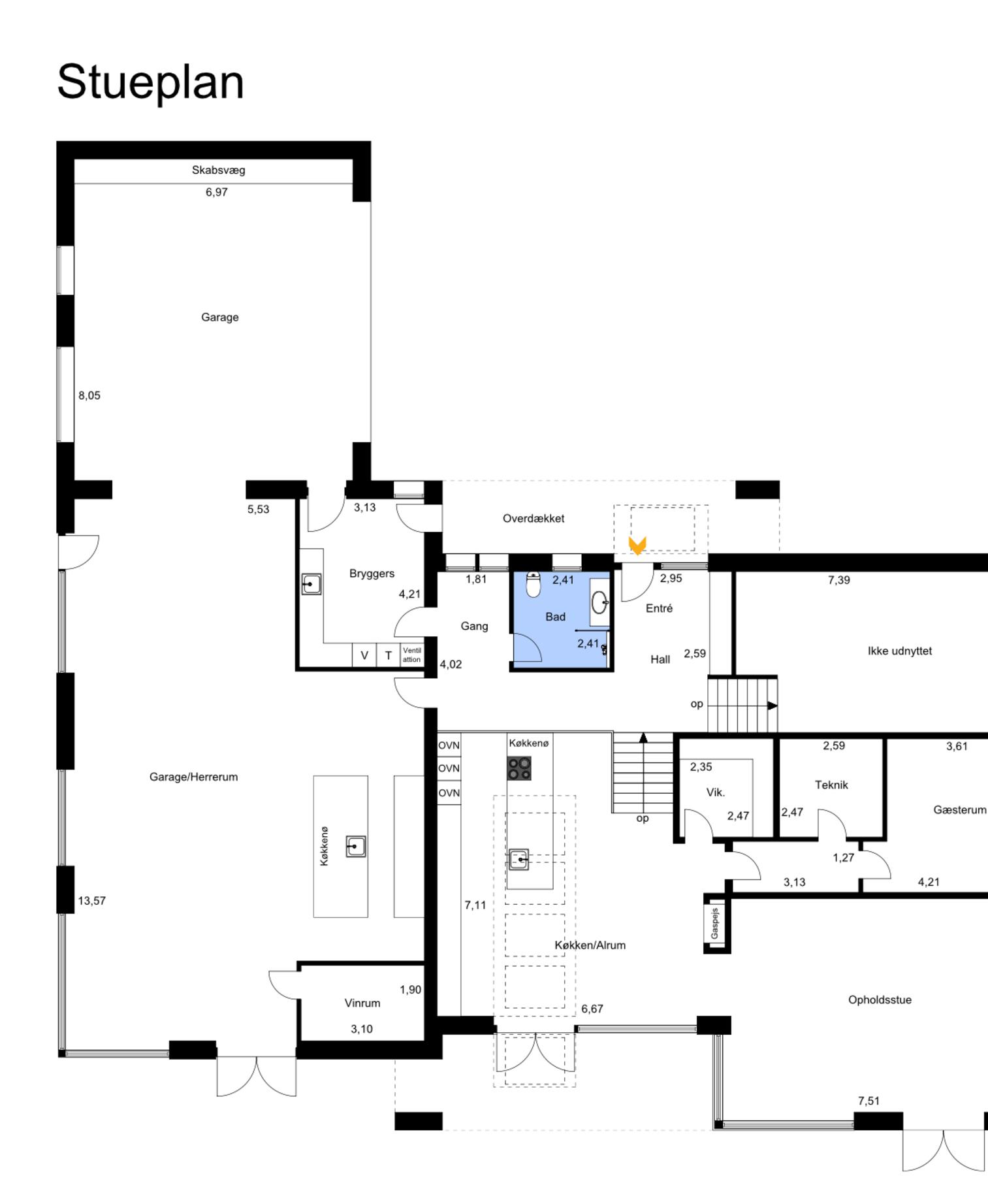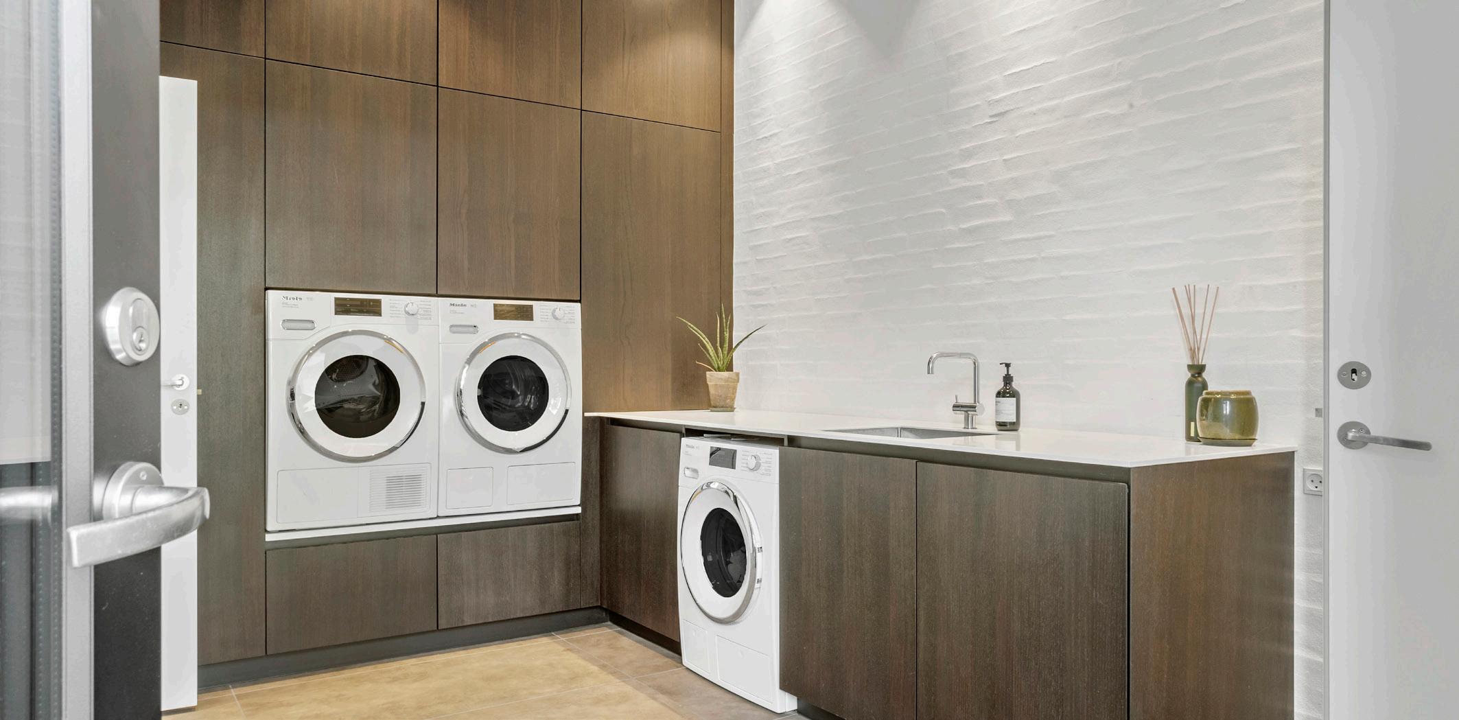 Ejendommens faciliteter understøtter både det praktiske og det æstetiske, hvilket giver en fuldendt boligoplevelse. Den store dobbeltgarage med glasporte lukker naturligt lys ind og fungerer nærmest som en integreret del af huset og foran garagen er der masser af ekstra plads til parkering. Ved indgangen til boligen finder du et praktisk bryggers med plads til flere vaskemaskiner samt flere opbeva ringsmu ligheder, som gør hverdagen lettere og mere organiseret. Det store viktualierum, der ligger i umiddelbar forbindelse med køkkenet, tilbyder masser af plads til opbevaring af både dagligvarer og specialiteter, hvilket giver en funktionel og praktisk løsning til dem, der nyder at have godt med plads.