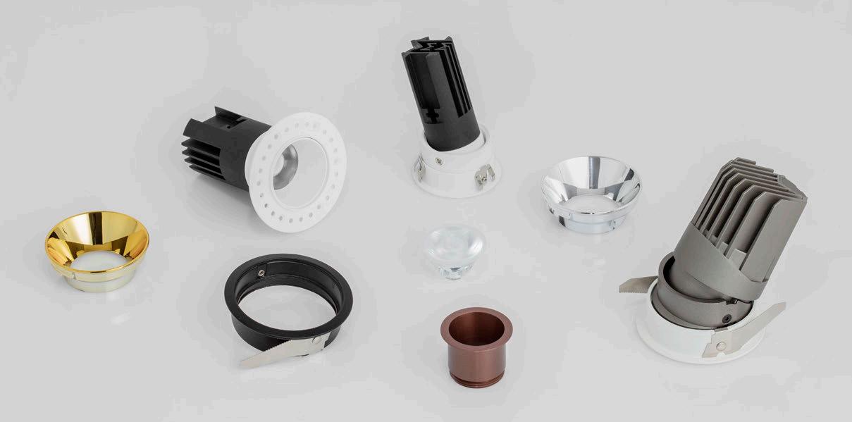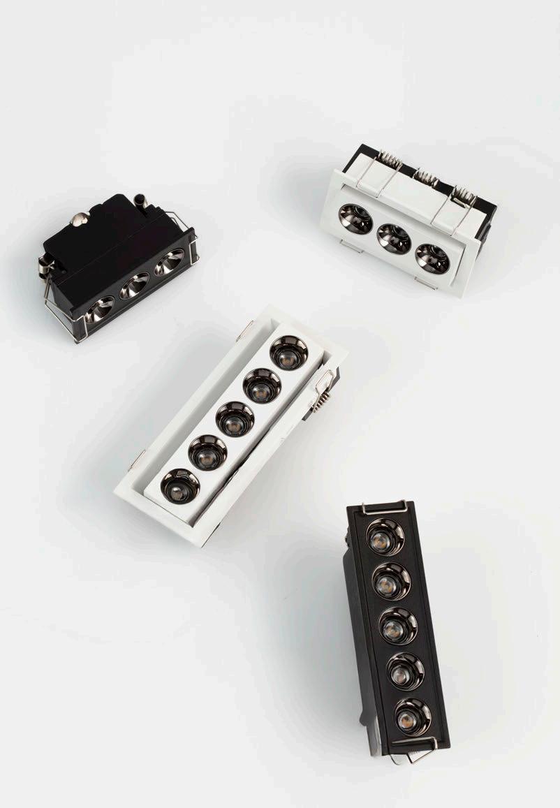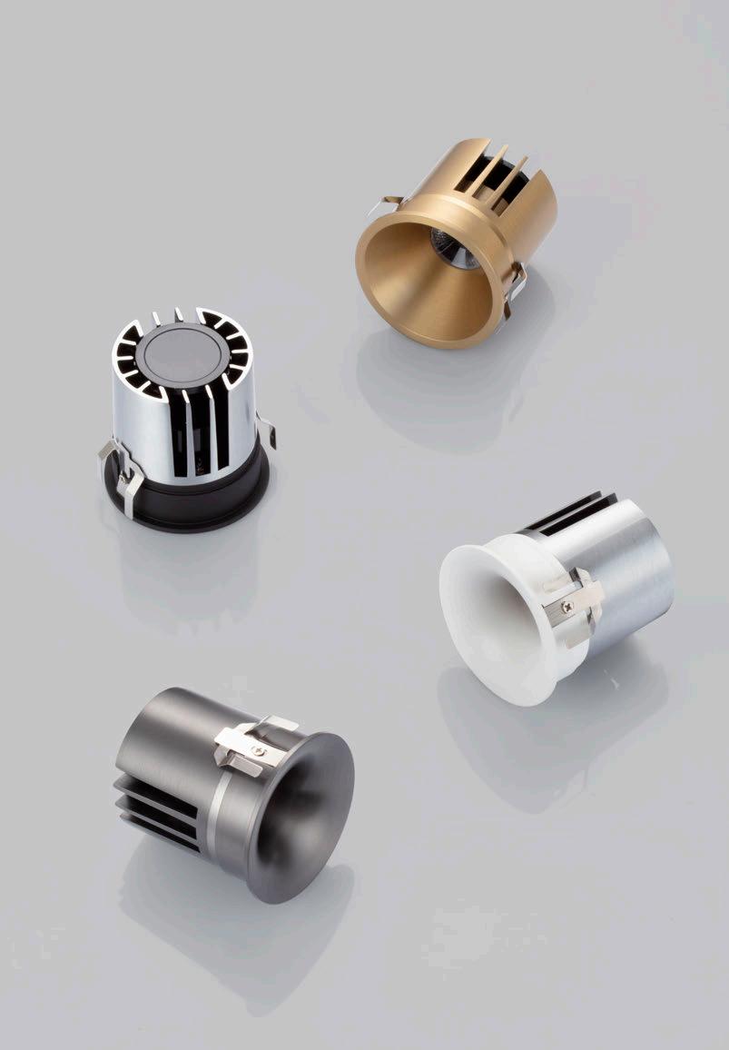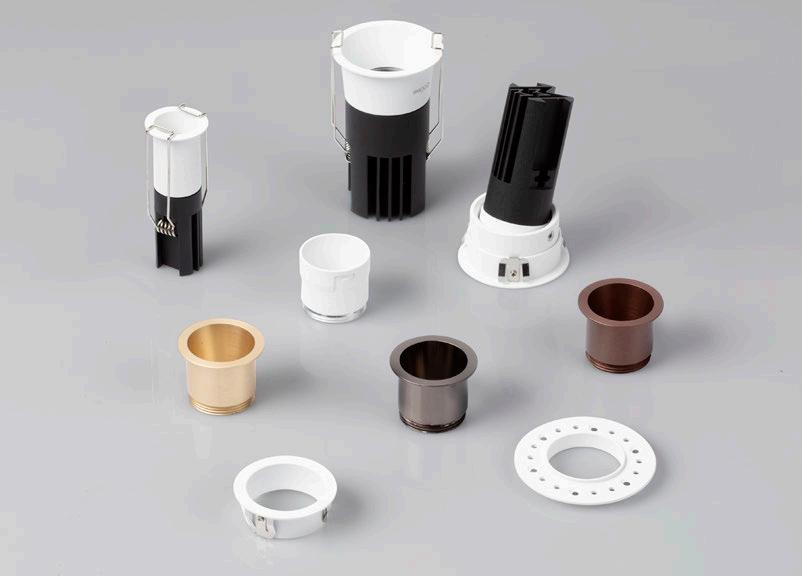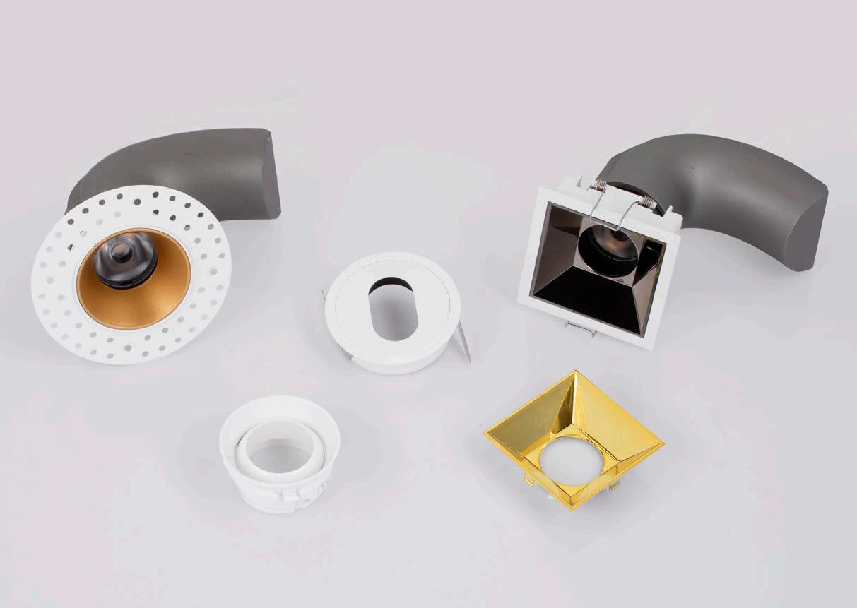 ONE DOWNLIGHT - INFINITE APPLICATIONS Introducing our next-generation modular downlight series, engineered and assembled in-house to deliver unparalleled flexibility, performance, and design precision. Available in two distinct versions — the "One" and the compact " MiniOne" — this system redefines architectural lighting with high efficiency outputs of up to 130 lm/W in the final product. Designed for versatility, it offers a broad range of trim color combinations, multiple Cut-Out sizes (from 25mm to 75mm), and both adjustable and fixed configurations to suit diverse installation needs. With IP54 protection options, UGR<17 and Darklight technology for the standard version, and innovative with special lens versions, this modular solution brings performance and aesthetics together seamlessly — making it the ideal choice for refined, modern interiors.