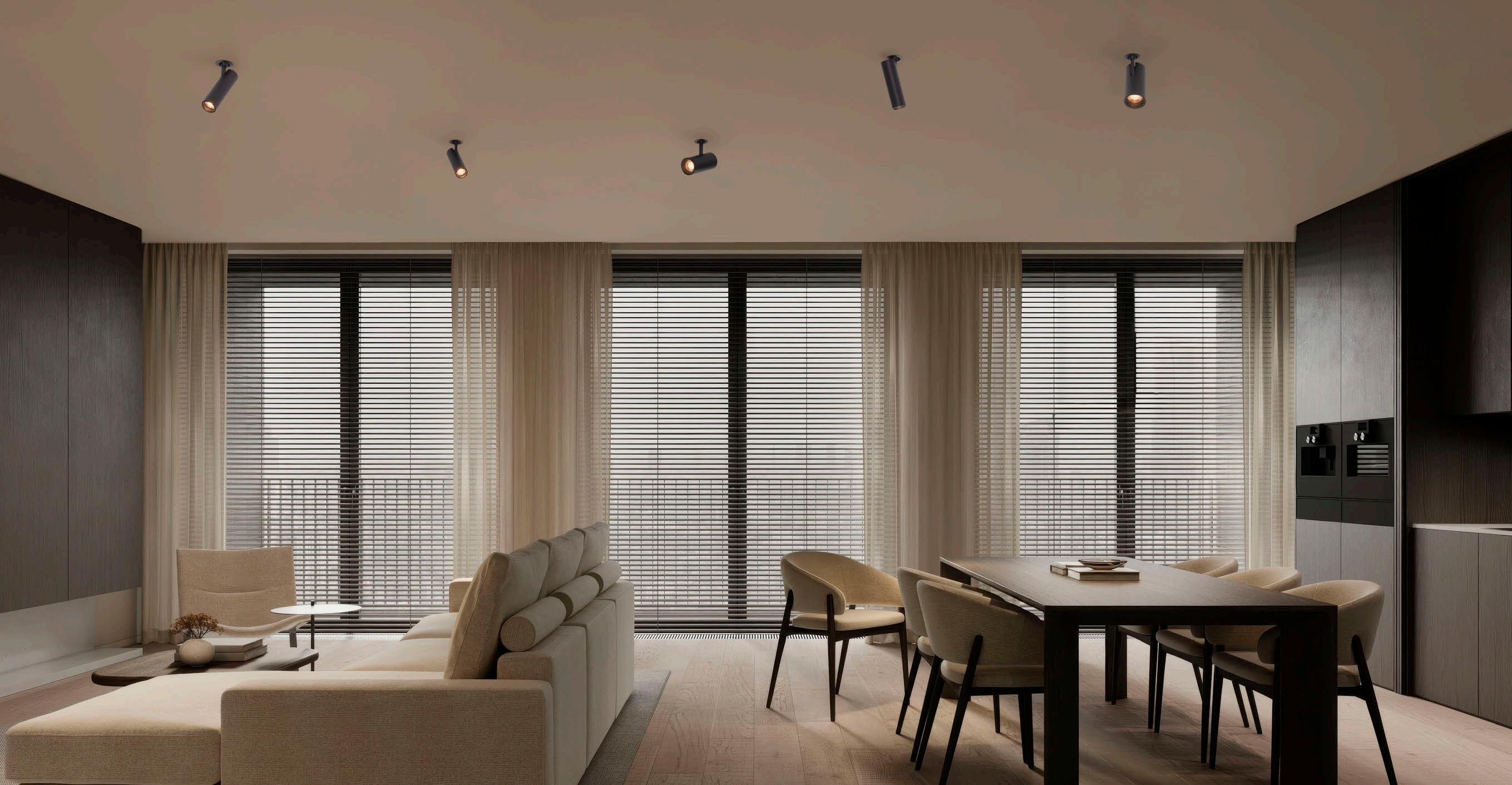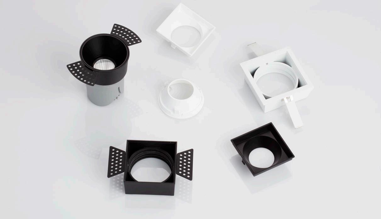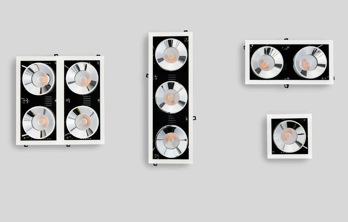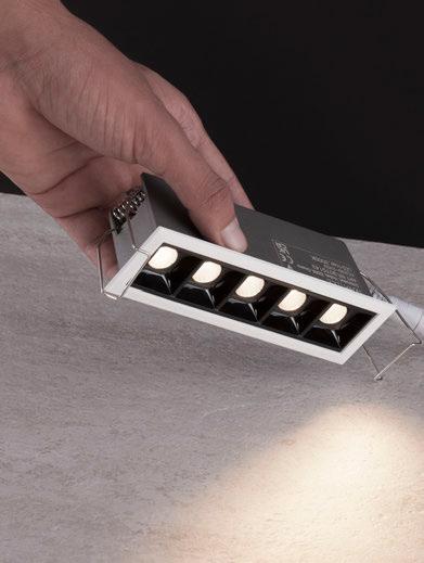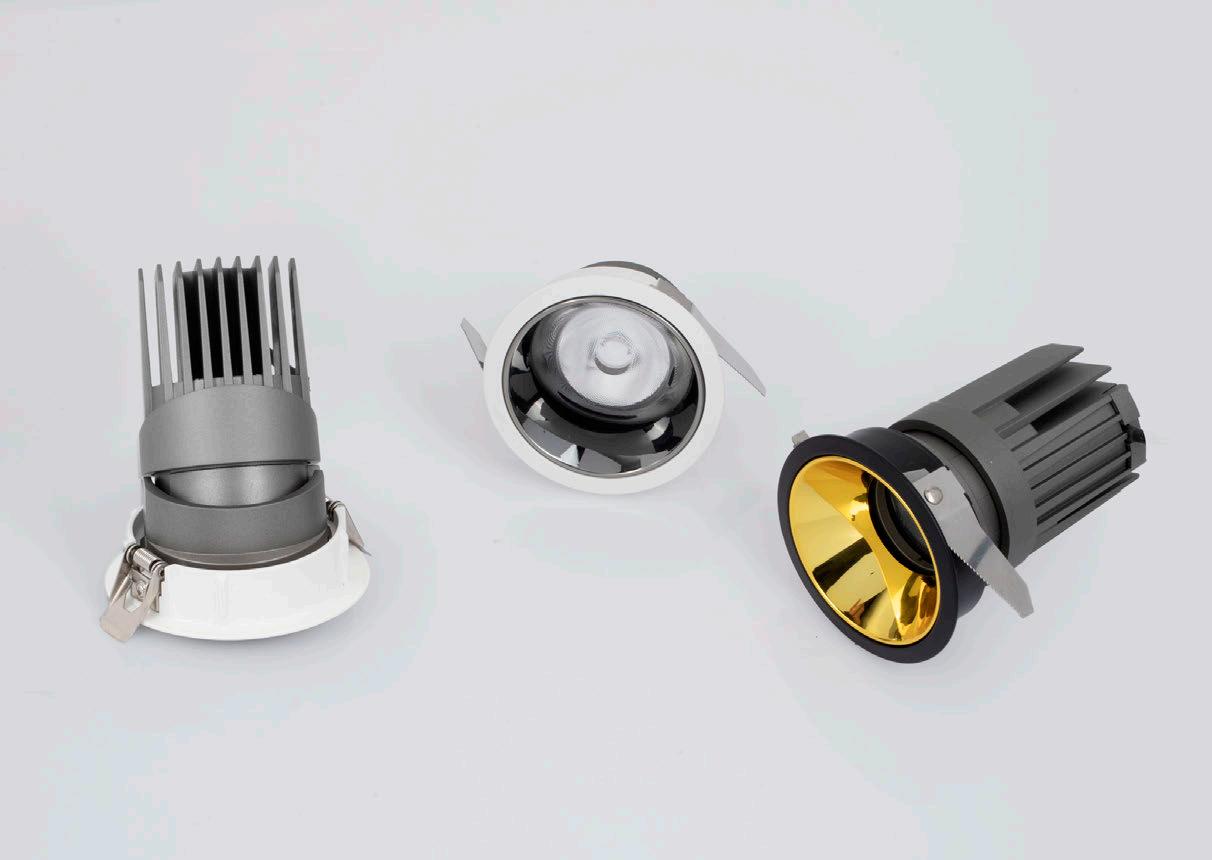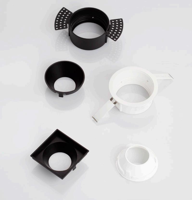 ONE DOWNLIGHT - INFINITE APPLICATIONS Introducing our next-generation modular downlight series, engineered and assembled in-house to deliver unparalleled flexibility, performance, and design precision. Available in two distinct versions — the "One" and the compact " MiniOne" — this system redefines architectural lighting with high efficiency outputs of up to 130 lm/W in the final product. Designed for versatility, it offers a broad range of trim color combinations, multiple Cut-Out sizes (from 25mm to 75mm), and both adjustable and fixed configurations to suit diverse installation needs. With IP54 protection options, UGR<17 and Darklight technology for the standard version, and innovative with special lens versions, this modular solution brings performance and aesthetics together seamlessly — making it the ideal choice for refined, modern interiors.