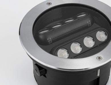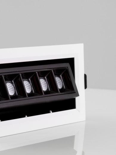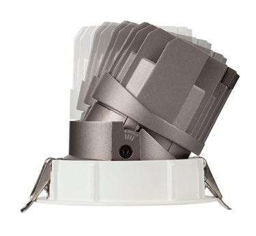 The modular downlight offers enhanced flexibility with horizontal rotation up to 355° and vertical tilting up to 30°, allowing precise directional lighting to suit any application or layout.