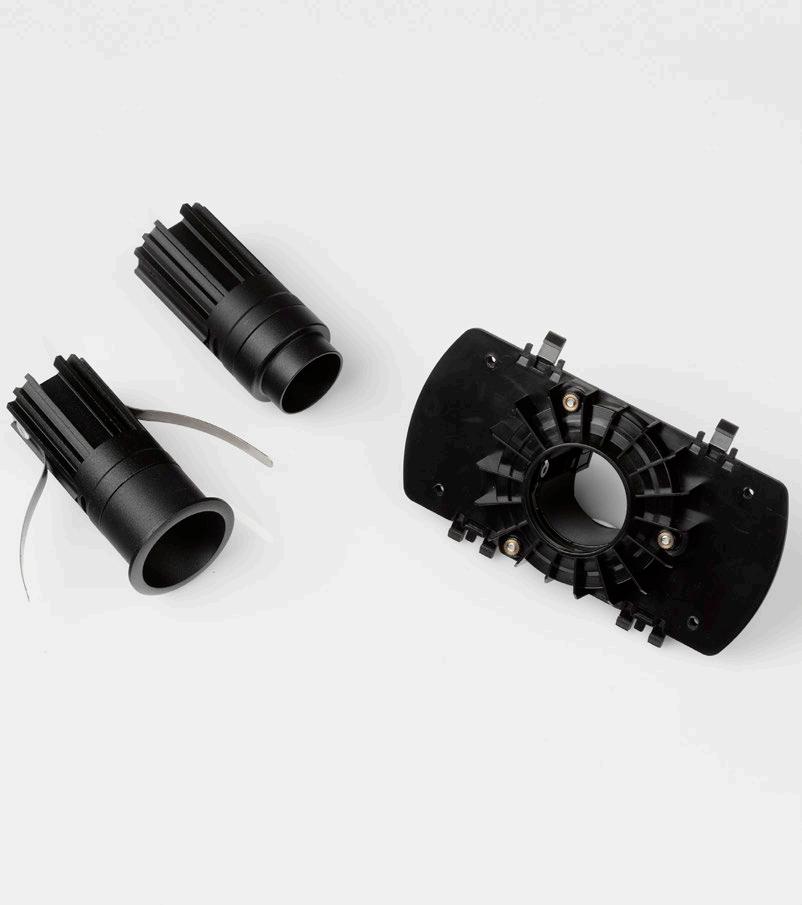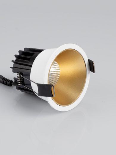 delivers exceptional performance with a 179 lm/W LED chip and up to 130 lm/W in the final product, ensuring powerful yet energy-efficient illumination. Designed for Cut-Outs from 65 to 75mm, it is available in both adjustable and fixed versions, with advanced options including Dim to Warm and Tunable White for dynamic lighting control. Offering four different beam angles, as well as linear or soft filter optics, the range also includes a variety of trim and inner trim color options to suit diverse design needs and architectural styles.