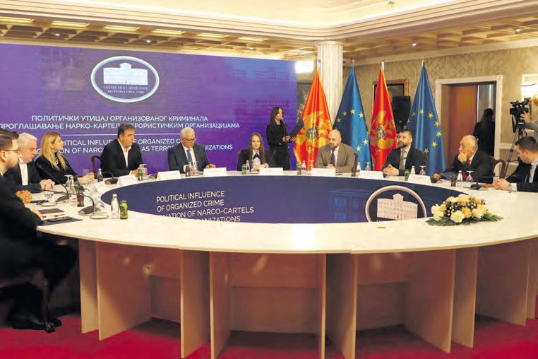 - Sudstvo je „rak rana“. Saglasan sam da ne treba govoriti da sve sudije rade loš posao, ali mislim će se i ministar Božović saglasiti da nemamo nijednu presudu protiv narko-kartela – dodao je Vučurović. Predsjednica Administrativnog odbora Jelena Nedović smatra da se mora „više ulagati u digitalizaciju i vještačku inteligenciju“, jer se kriminal razvija i u tehnološkom smislu. Kada je riječ o oduzimanju imovine, ističe da se mora mijenjati postojeći zakonski okvir kroz uvođenje strožih kazni i sigurni program za zaštitu svjedoka. Savjetnik predsjednika Skupštine i bivši predsjednik Ustavnog suda Miodrag Gogić podržava ideju Mandića. - Bitno je da se politički uticaj na organizovani kriminal inkorporira u krivično zakonodavstvo – rekao je on. Komentarisao je i činjenicu da je predloženi model „na ivici kršenja ljudskih prava“, ali je da će Evropski sud za ljudska prava i slobode to tolerisati zbog posljedica koje nosi terorizam kao globalna opasnost. Posljednji u nizu govornika bio je savjetnik predsjednika Vlade za bezbjednost i odbranu Todor Goranović, za kojeg je riješenost izvršne vlasti i predsjednika Vlade u borbi protiv kriminala neupitna. Potvrdio je i da Mandićeva inicijativa ima njihovu podršku. Kristina JERKOV