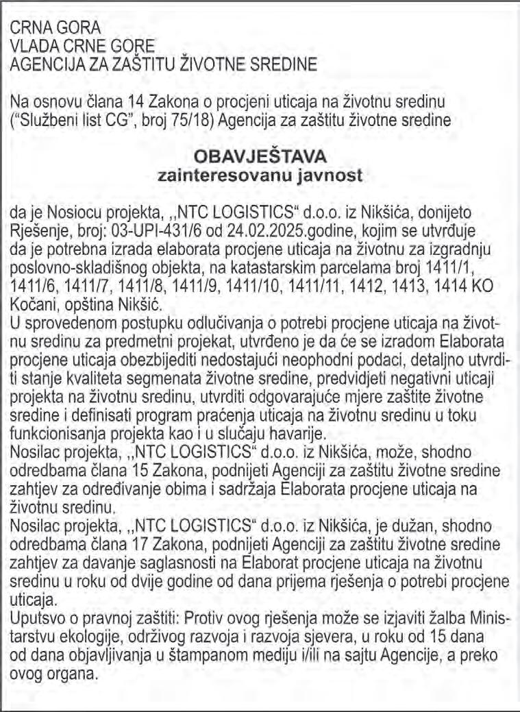 05.03.2025. godine, u smislu člana 45 ZIO-a, donio je odluku o DOSTAVLJANJU JAVNIM OBJAVLJIVANJEM
