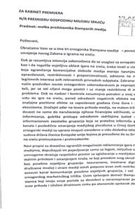 informisanja javnosti Kabinet predsjednika Vlade obavještava da dokument ovog naziva i sadržaja ne postoji kao prozivod rada Vlade, premijera ili Kabineta predsjednika Vlade. Kako je predsjednik Vlade je-