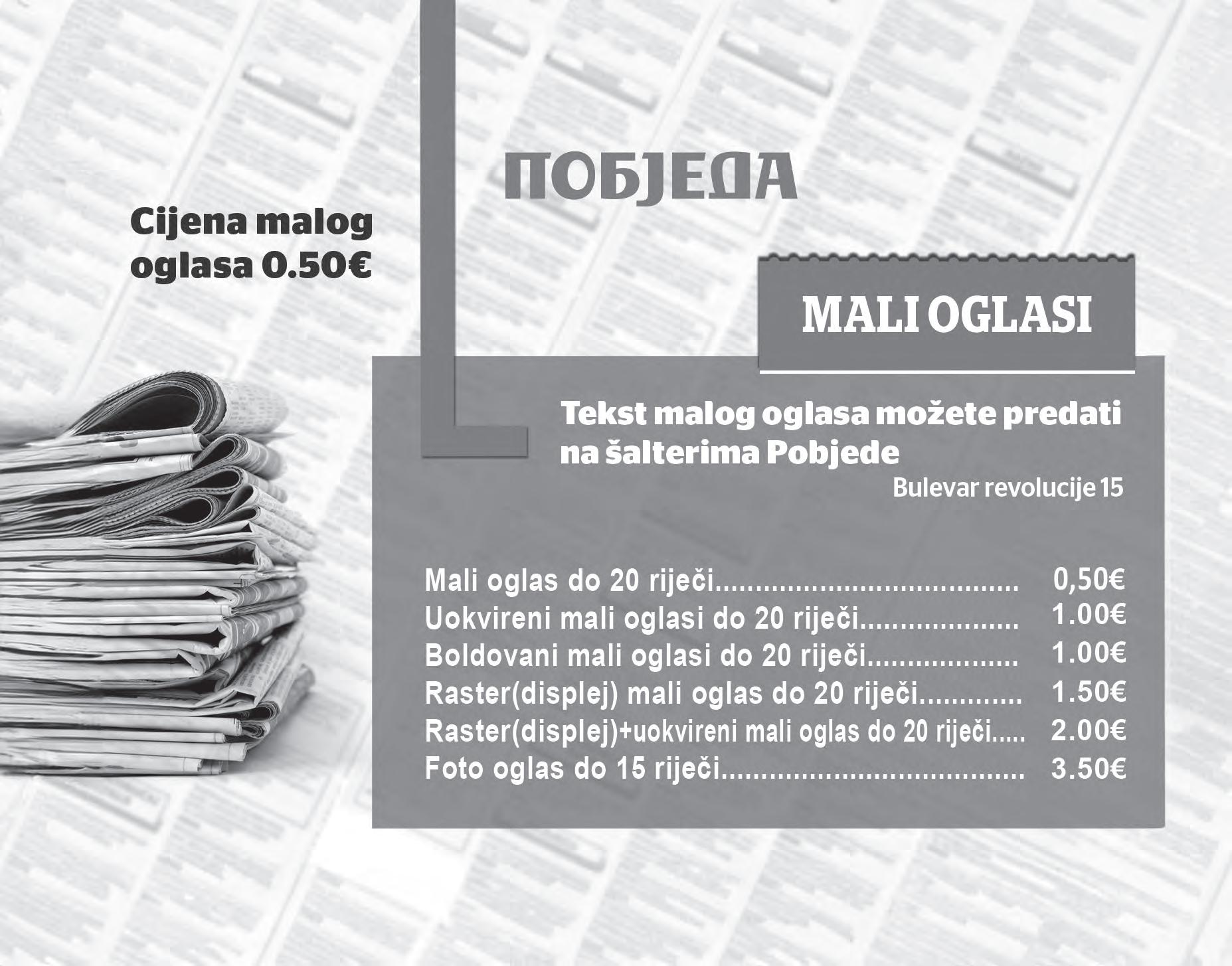 Poštovani čitaoci i korisnici oglasnog prostora, materijal za objavljivanje čitulje možete poslati na