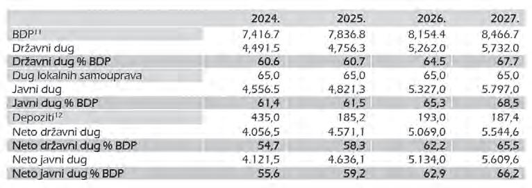 U strategiji se navodi da se prema projekcijama Ministarstva finansija, očekuje da će državni dug na kraju 2024. godine iznositi 60,56 odsto BDP-a, dok će javni dug iznositi 61,44 odsto BDP-a.