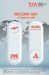 pan broj putnika koji su prošli kroz TIA dostigao je 6,4 miliona, što predstavlja povećanje od 8% u poređenju sa istim periodom 2024. godine. Širenje avio - mreža u 2025. godini Ova visoka stopa rasta podržana je širenjem linije, avio-kompanije i otvaranjem novih destinacija. Tokom 2025. godine, TIA je dodala niz ključnih destinacija u Evropi, uključujući Lisabon, Nant, Bordo, Talin, Viljnus i Tel Aviv, dok se nakon ljeta očekuje i pokretanje novih linija za Malagu, Larnaku i Valetu.