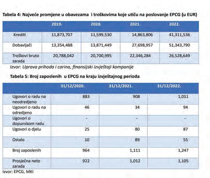 Po podacima MKI, EPCG je na kraju 2020. godine imala 964 radnika, da bi na kraju 2021. godine taj broj porastao na 1.111. Na kraju 2022. bilo je zapošljeno čak 1.247 radnika što je povećanje od 30 odsto. Nezvanična saznanja Pobjede govore da trenutno u EPCG ima preko 1.300 radnika i da je taj broj znatno porastao u 2023. godini.