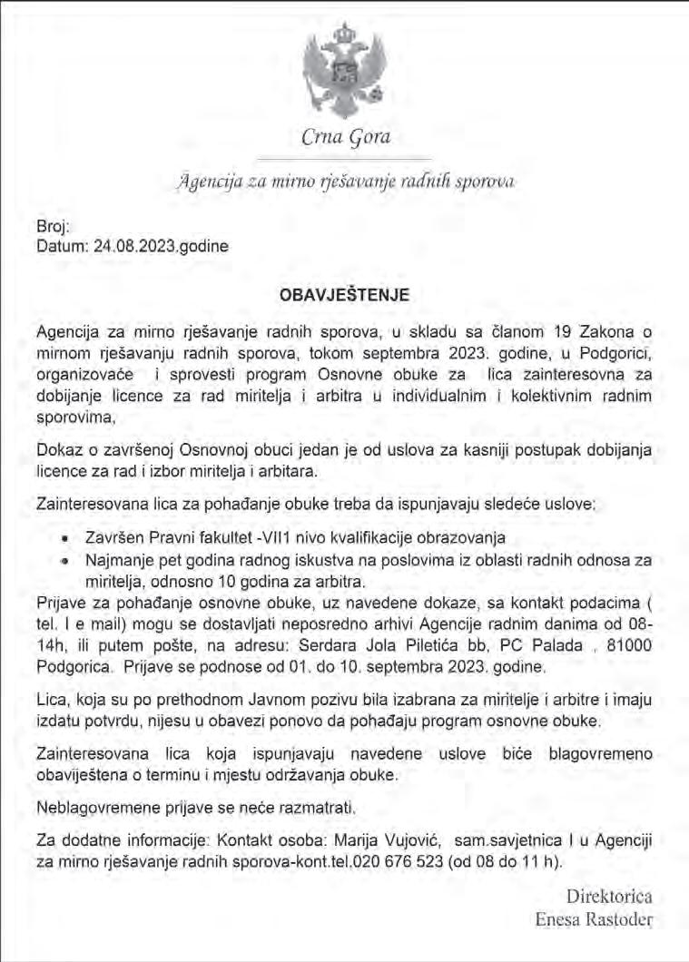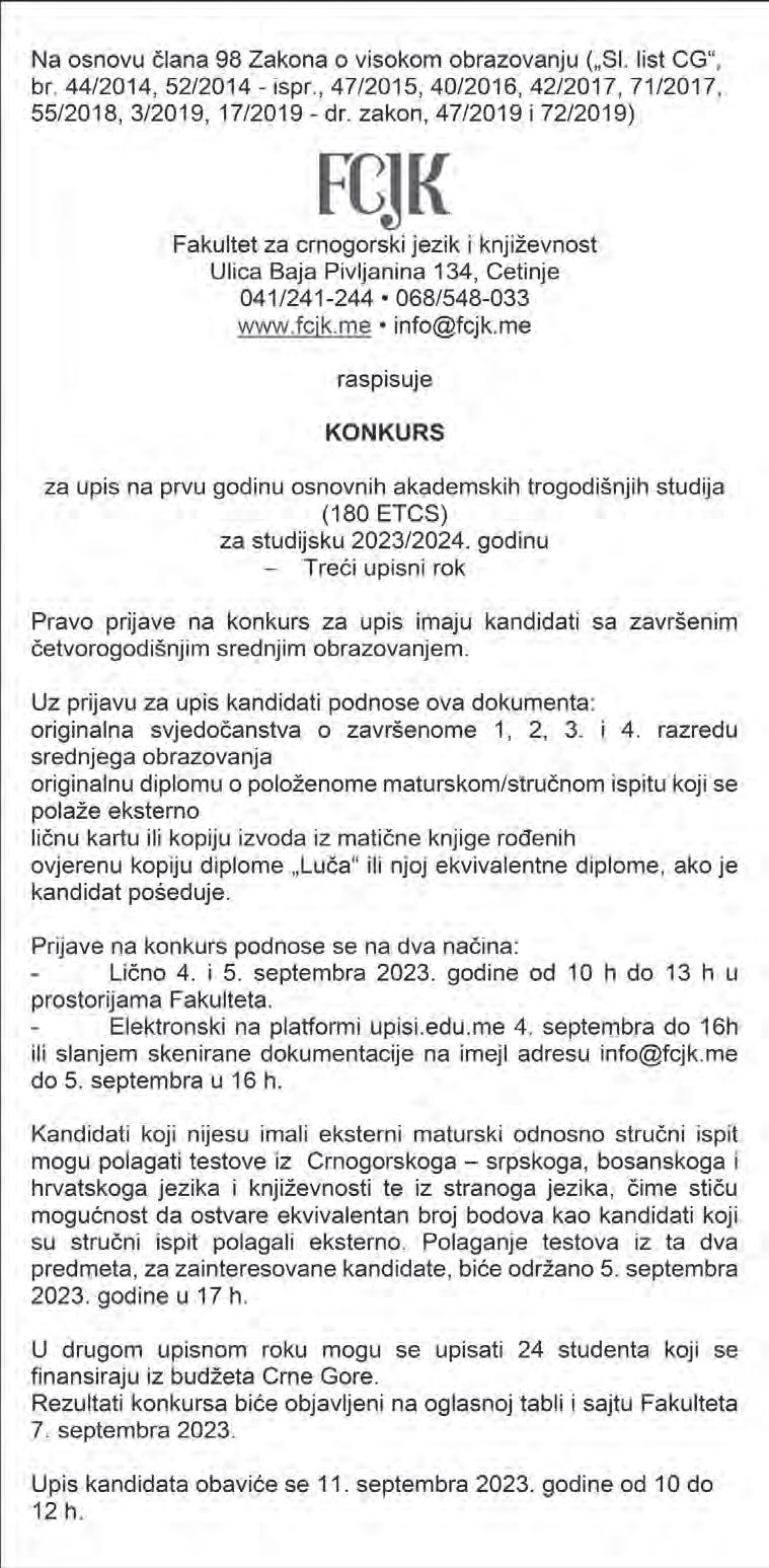 34 Subota, 2. septembar 2023. Oglasi i obavještenja