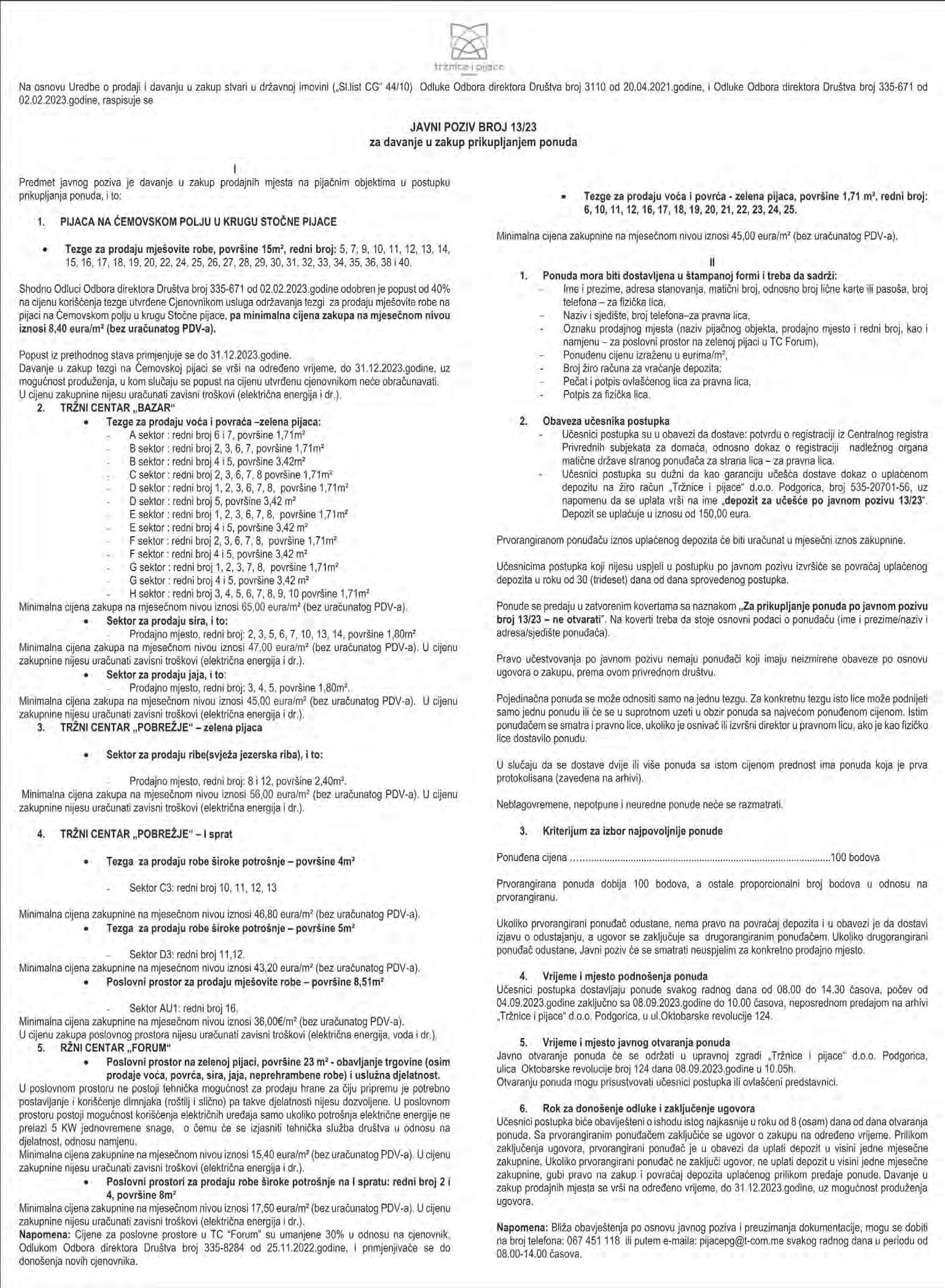VII Ponudioci su dužni da prije početka nadmetanja polože jemstvo na račun Javnog izvšitelja 540-7174-60. (na koji se polažu sredstva na ime jemstva) u iznosu od 9.605,30 €, što predstavlja 10 % utvrđene vrijednosti nepokretnosti. Ponudiocima čija ponuda ne bude prihvaćena vratiće se novac položen na ime jemstva odmah po zaključenju nadmetanja, osim II i III ponuđaču. Zainteresovanim kupcima Javni izvršitelj će omogućiti razgledanje nepokretnosti 8 dana prije održavanja javnog nadmetanja, na pismeni predlog zainteresovanog kupca.
