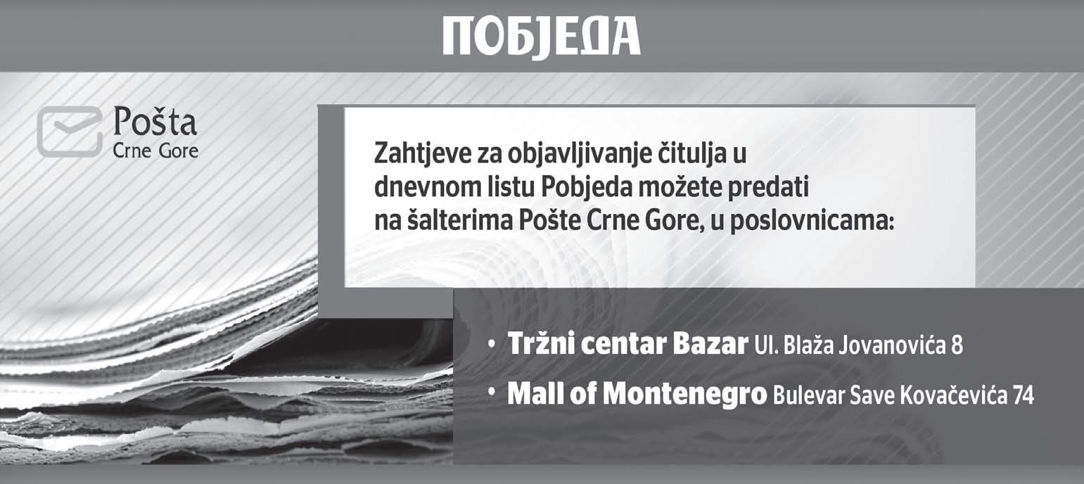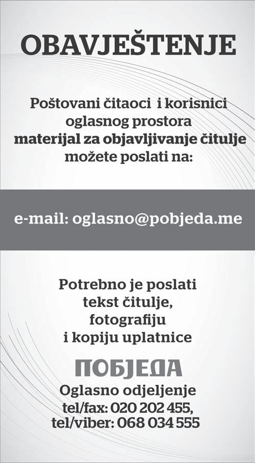 9. april 2023. | Podgorica, Crna Gora | Godina LXXIX/Broj 20610 | Prvi broj izašao je 24. oktobra 1944. u Nikšiću | pobjeda.me | Cijena 0,70 eura