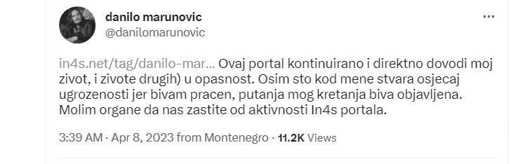 Reditelj i građanski aktivista pozvao nadležne da reaguju jer mu je život u opasnosti