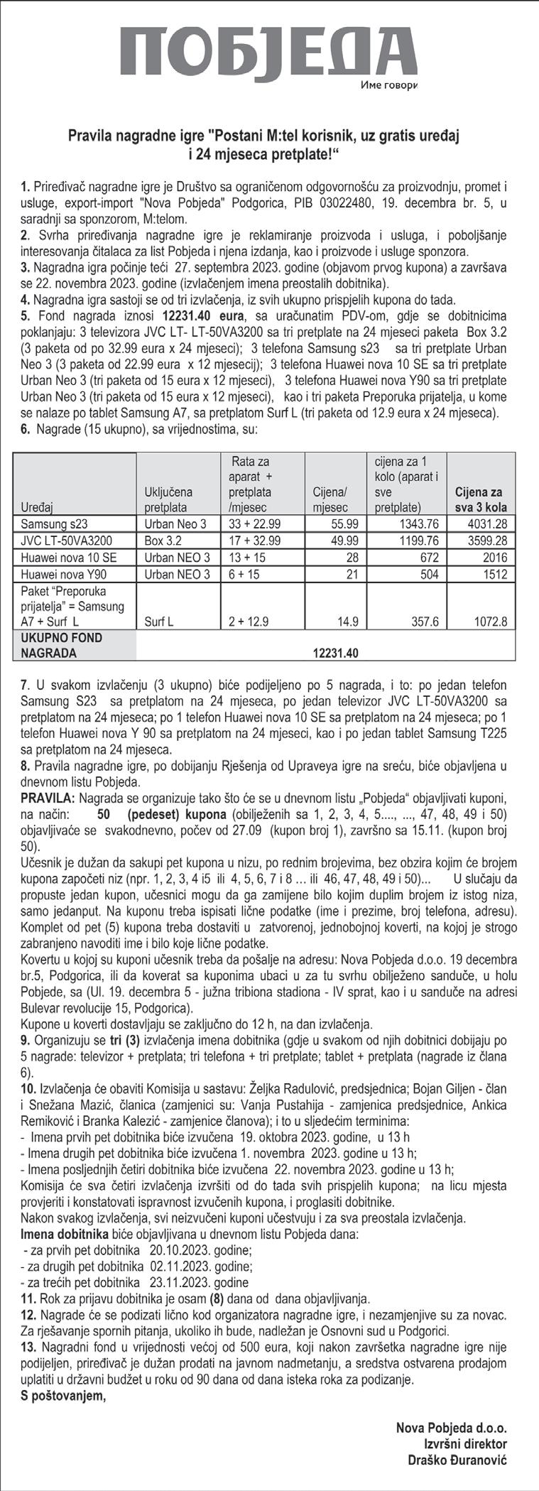 Subota, 9. septembar 2023. | Podgorica, Crna Gora | Godina LXXIX / Broj