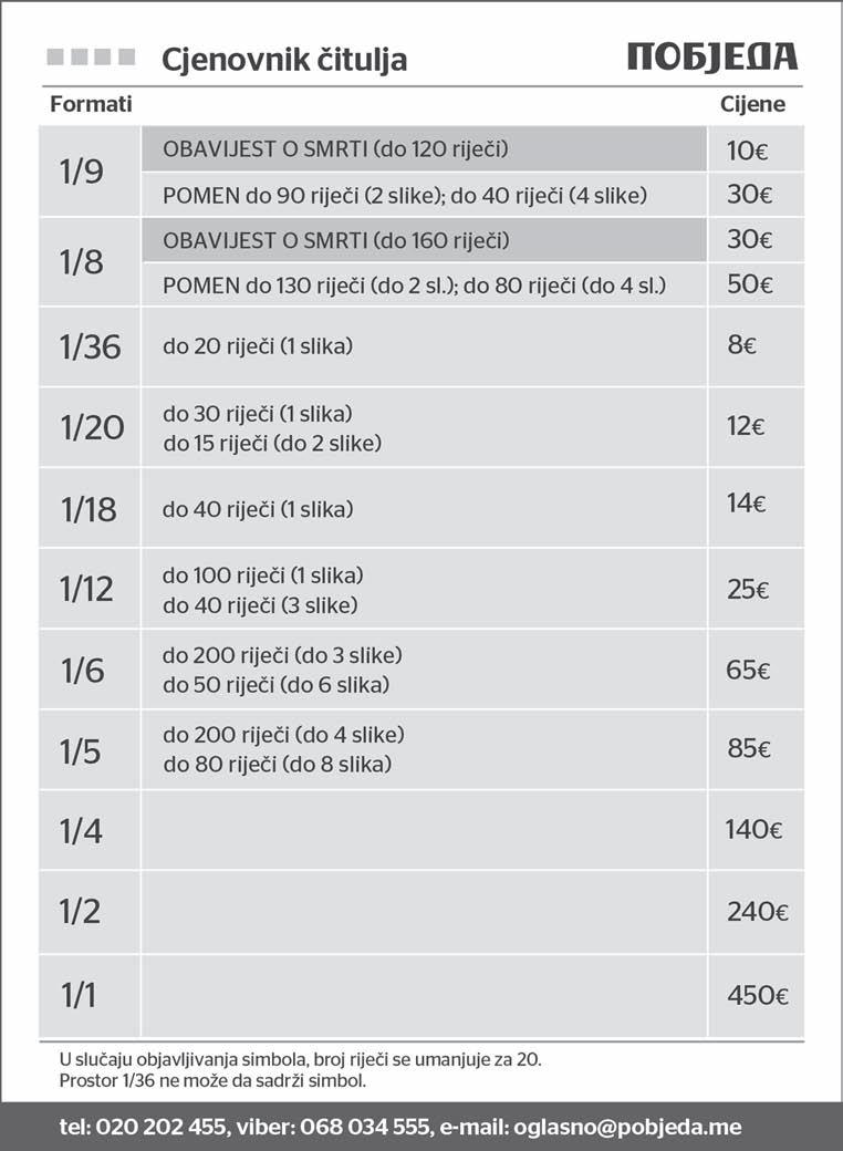 Poneđeljak, 10. april 2023. | Podgorica, Crna Gora | Godina LXXIX/Broj 20611 | Prvi broj izašao je 24. oktobra 1944. u Nikšiću | pobjeda.me | Cijena 0,70 eura
