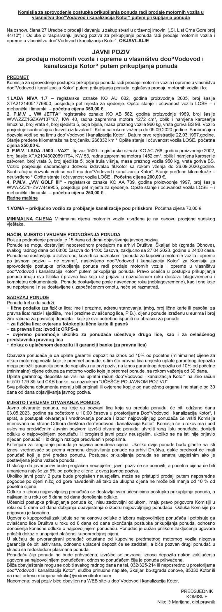 39 Srijeda, 12. april 2023. Oglasi i obavještenja