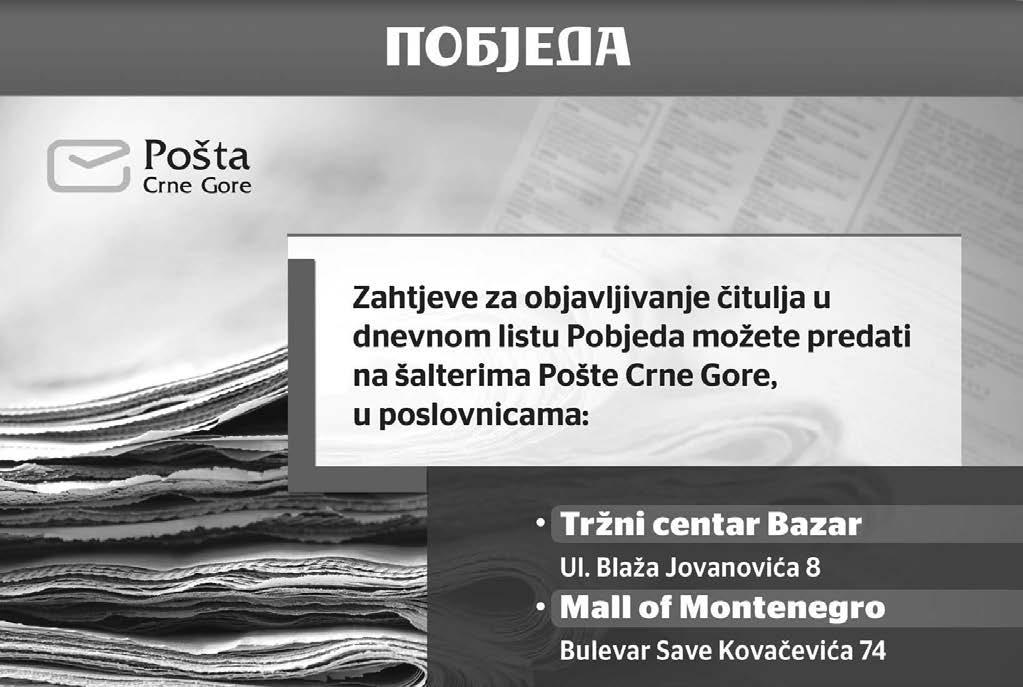 Prijave se podnose u roku od 8 dana od dana objavljivanja javnog poziva u dnevnom listu „Pobjeda“.