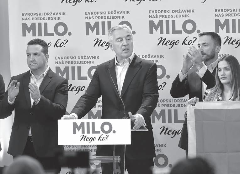 Predsjednički kandidat DPS-a Milo Đukanović kazao je sinoć da očekuje pobjedu u drugom krugu predsjedničkih izbora. – Želim da podijelim zadovoljstvo što je Crna Gora još jednom potvrdila veoma dobar demokratski kapacitet. Izbori su protekli u mirnoj atmosferi, u kojoj su ljudi mogli slobodno da izraze svoju volju – kazao je Đukanović na konferenciji za medije. U prvom krugu su, dodaje, ostvarili to što su željeli i to je ono što su planirali ostvariti. – Ostvario sam 36 odsto glasova, što je u apsolutnim brojevima nešto iznad 120.000 glasova, što smatram vrijednim rezultatom. Tu je ozbiljna prednost nad drugim kandidatom, sa kojim ću se takmičiti u drugom krugu –rekao je Đukanović.