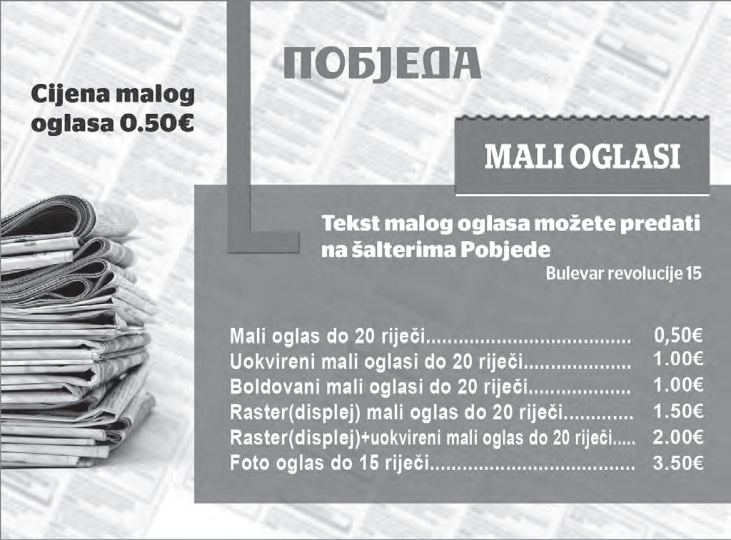 Subota, 16. septembar 2023. | Podgorica, Crna Gora | Godina LXXIX / Broj 20762 | Prvi broj izašao je 24. oktobra 1944. u Nikšiću | pobjeda.me | Cijena 0,70 eura