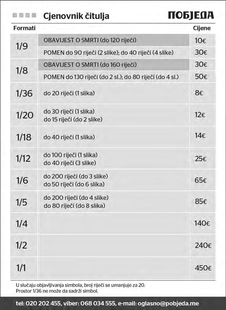 OGLASNO ODJELJENJE „NOVA POBJEDA“