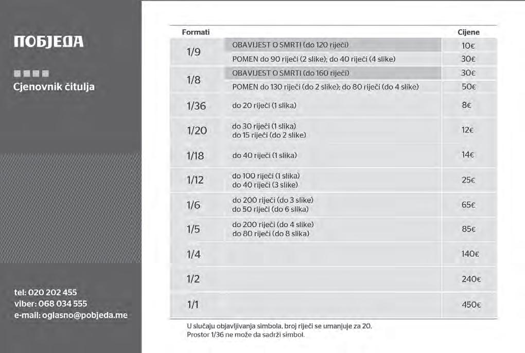 Petak, 23. februar 2024. | Podgorica, Crna Gora | Godina LXXX / Broj 20917 | Prvi broj izašao je 24. oktobra 1944. u Nikšiću | pobjeda.me | Cijena 0,70 eura