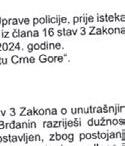 - To nije po zakonu i u duhu zakonskih odredbi koje propisuju ovu materiju. U slučaju prestanka mandata direktoru policije, ministar unutrašnjih poslova je dužan da predlaži osobu za vršioca dužnosti koja na toj poziciji može biti u periodu od šest mjeseci –kaže Radulović.