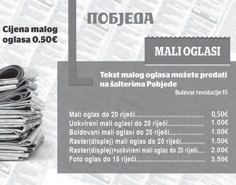Neđelja, 10. mart 2024. | Podgorica, Crna Gora | Godina LXXX / Broj 20933 | Prvi broj izašao je 24. oktobra 1944. u Nikšiću | pobjeda.me | Cijena 0,70 eura