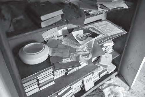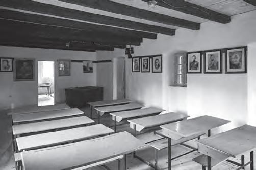 Po stanju u kojem se enterijer škole nalazi možemo pretpostaviti da je prozor otvoren mjesecima. Ispod razbijenog prozora u prizemlju sa zapadne strane, u unutrašnjosti objekta, zatekli smo crkvena vrata sa krstom, položena na mermerni pod koji je novijeg datuma STR. 10. i 11.