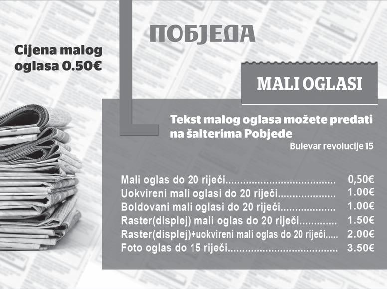 Poneđeljak, 21. avgust 2023. | Podgorica, Crna Gora | Godina LXXIX/Broj 20736 | Prvi broj izašao je 24. oktobra 1944. u Nikšiću | pobjeda.me | Cijena 0,70 eura