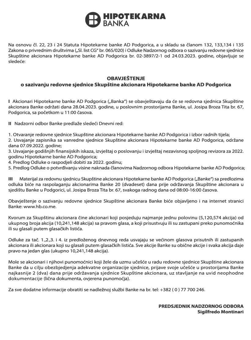33 Subota, 25. mart 2023. Oglasi i obavještenja 1046