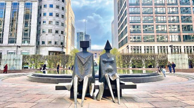 Ublažavanje biznis-tona, od kojeg ovaj okrug sasvim sigurno ne može pobjeći, vjerovatno je dovelo i do toga da turisti sve više svraćaju u ovaj „menhetenski“ dio londonske metropole. Protekle sedmice dobili su razlog više za posjetu: postavljeni komadi nekih od vodećih umjetničkih imena uljepšali su betonsku okolinu zanimljivim rješenjima.