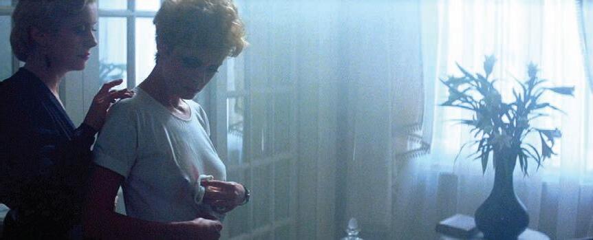 Što, naravno, sa plana estetike nije uopšte ni loše: pošteno je reći da je ludi randevu jedne vampirice i jedne terapeutkinje koja će vampirica tek postati - jedna od ključnih erotskih scena tako otkačeno erotizovane filmske ere osamdesetih. I sve to tu, u njihovom plesu u svili, savršeno distancirane i vanvremenske Denev, te svakodnevno životne Sa -