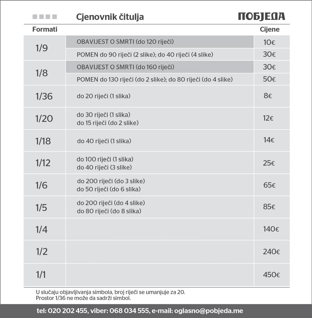 OGLASNO ODJELJENJE „NOVA POBJEDA“