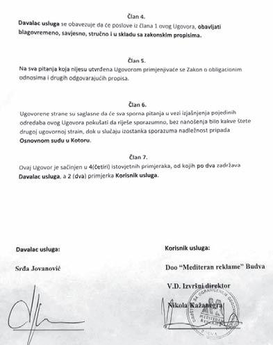 Ugovor o djelu sa Jovanovićem je sačinjen sredinom maja 2022. godine, na period od 120 dana i uz ugovorenu naknadu od 700 eura mjesečno. Možda sve ne bi zavrijedjelo pažnju da novouposleni u ,,Mediteran reklamama“ nije samo mjesec ranijeuhapšen i osumnjičen da je, kao tužilac u Kotoru, zloupotrijebio službeni položaj