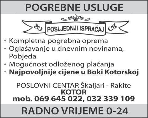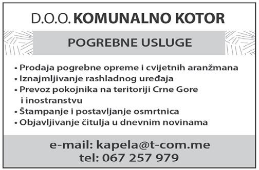 Vječna ti slava i hvala za sve što si nam podario i pružio. Hvala ti za svu neograničenu ljubav, ostaćeš zauvijek u našem sjećanju. Pomen pokojniku će se održati u krugu najuže porodice, u crkvi Sv. Jovana Krstitelja (Dragoševo selo) Krivošije u 11 00 časova. OŽALOŠĆENA PORODICA