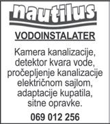 OTČEPLJENJE svih vrsta kanalizacija el. sajlom. Dolazim odmah, non-stop. Sitne vodoinstalaterske opravke. Pregled cijevi kamerom. Begović Tel. 069/747-204, 069/424-150, 067/473-367 2