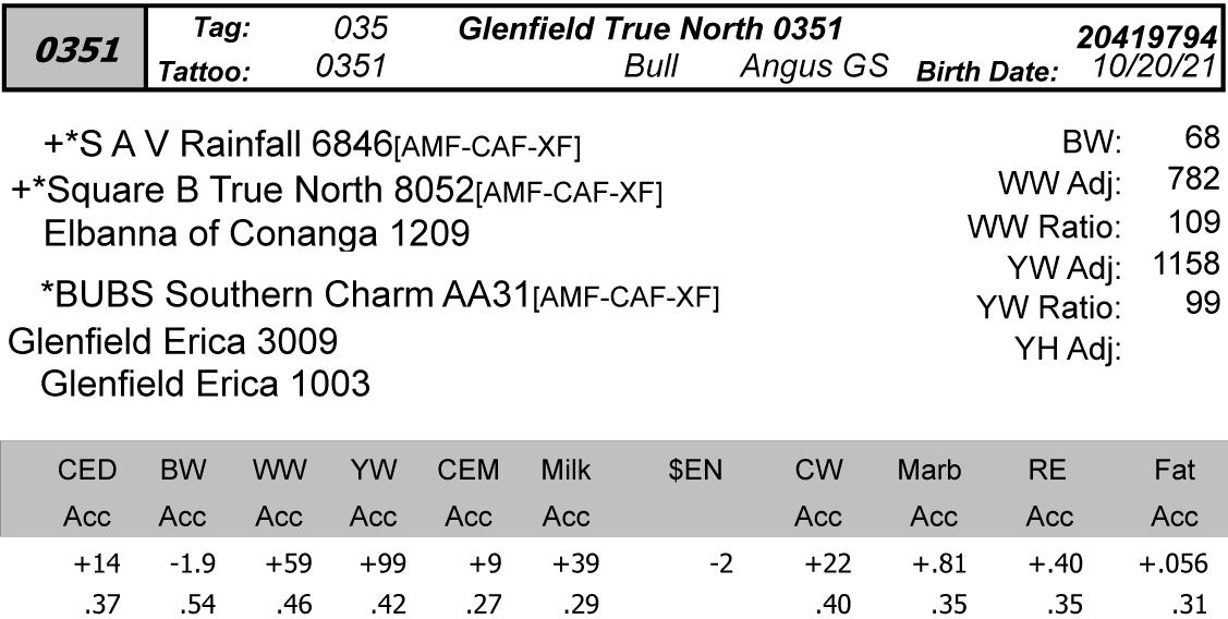 TRUE NORTH 0351 20419794 ANGUS GS Birth Date: 10/20/21