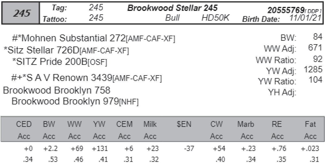 BROOKWOOD STELLAR 249 20555258 DDP HD50K Birth Date: 11/01/21 8