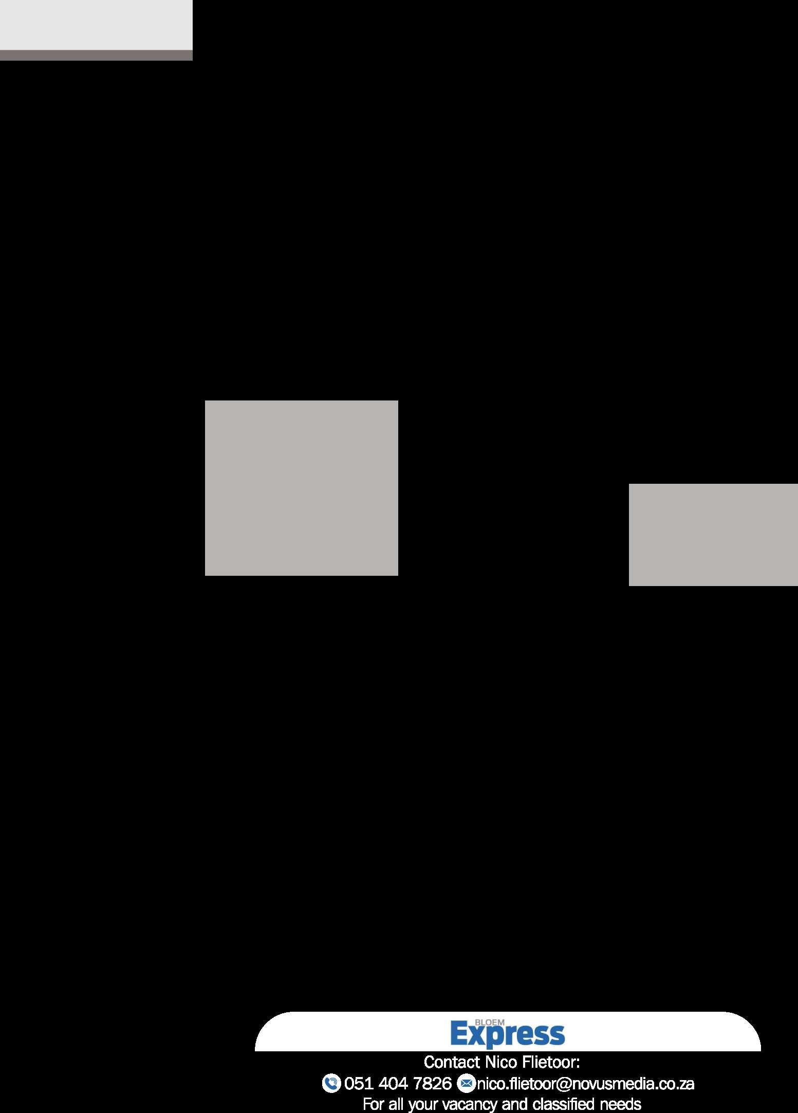 Any person may, within 21 days from 1 August 2025 (date of publication in Provincial Gazette) lodge in terms of section 33 of the Free State Gambling and Liquor Act, 2010 an objection in writing to the Free State Gambling and Liquor Authority (address set out hereunder). The objection must clearly indicate the full names, identity number, residential address, postal address and telephone number, if any, and where applicable, its registration number and address of its office, of the objector. The objection must also identify the application to which it relates. The application may be inspected at the offices of the offices of the Authority during their office hours. The address of the relevant Office of the Liquor Authority is: Motheo, Mansion Building, 83 Henry Street, Westdene, Bloemfontein, 9301 Place: Bloemfontein