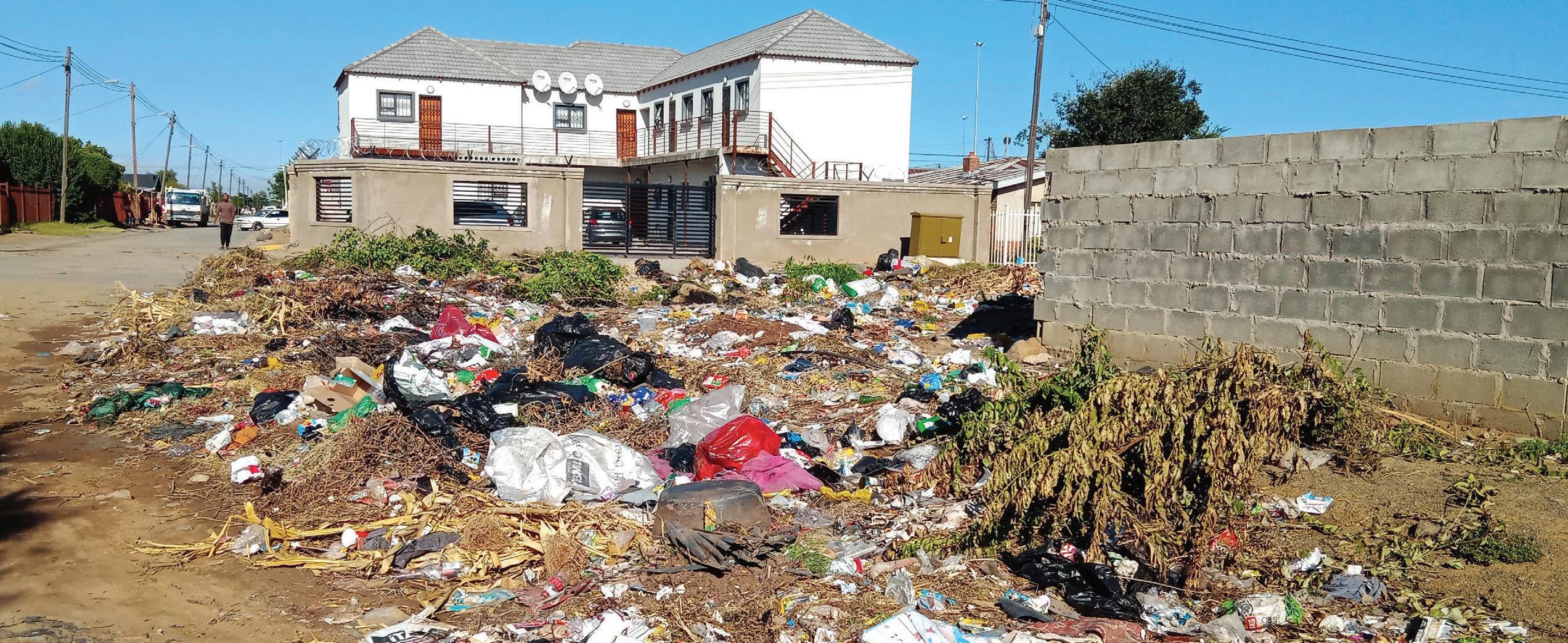 Wastedisposedofbyresidents on asection of road in Phahameng,Bloemfontein,attests to the never-ending challengepresented by the lack in delivery of basic services in the