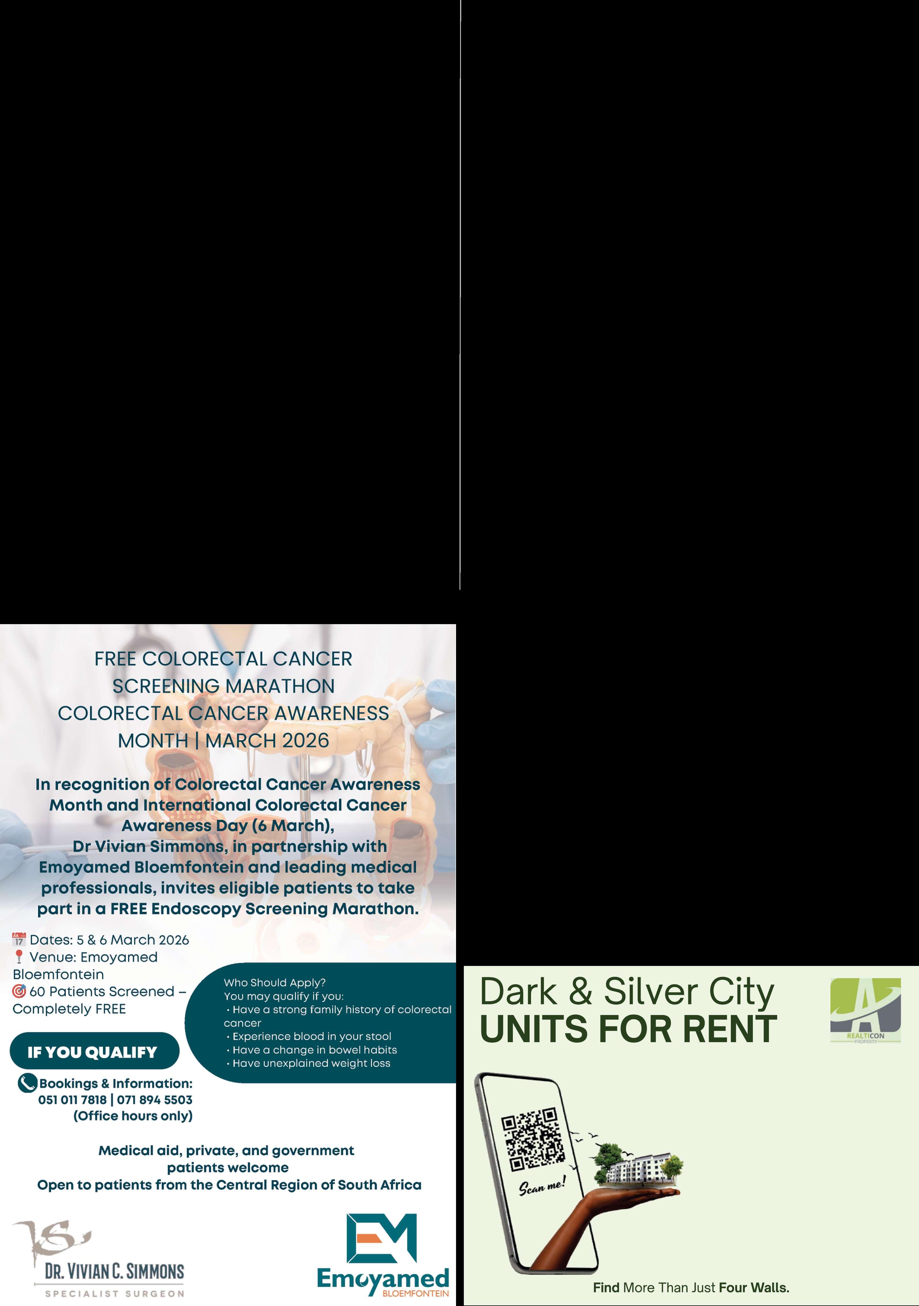 Any person whohas an interest in the matter or who wishes to object to thegranting of theapplication or who desires to be heard, or wants to make representations concerning thematter, must communicateinwriting with the Town and RegionalPlanningSubdirectorate of theMangaungMetropolitan Municipalityatthe above-mentioned address, or e-mail: george.masuabi@mangaung.co.za, or post to P.O. Box 3704, Bloemfontein, 9300 withinaperiod of 30 days from thedateof publication hereof, namely 18 February 2026 –20March 2026, quotingyour name, address, contact details,interest in the application and reasons for your comments. The Municipality mayrefuse to accept commentsreceived after theclosingdate. Any person whocannot write willbeassisted by aMunicipal ofcial by transcribing theircomments.