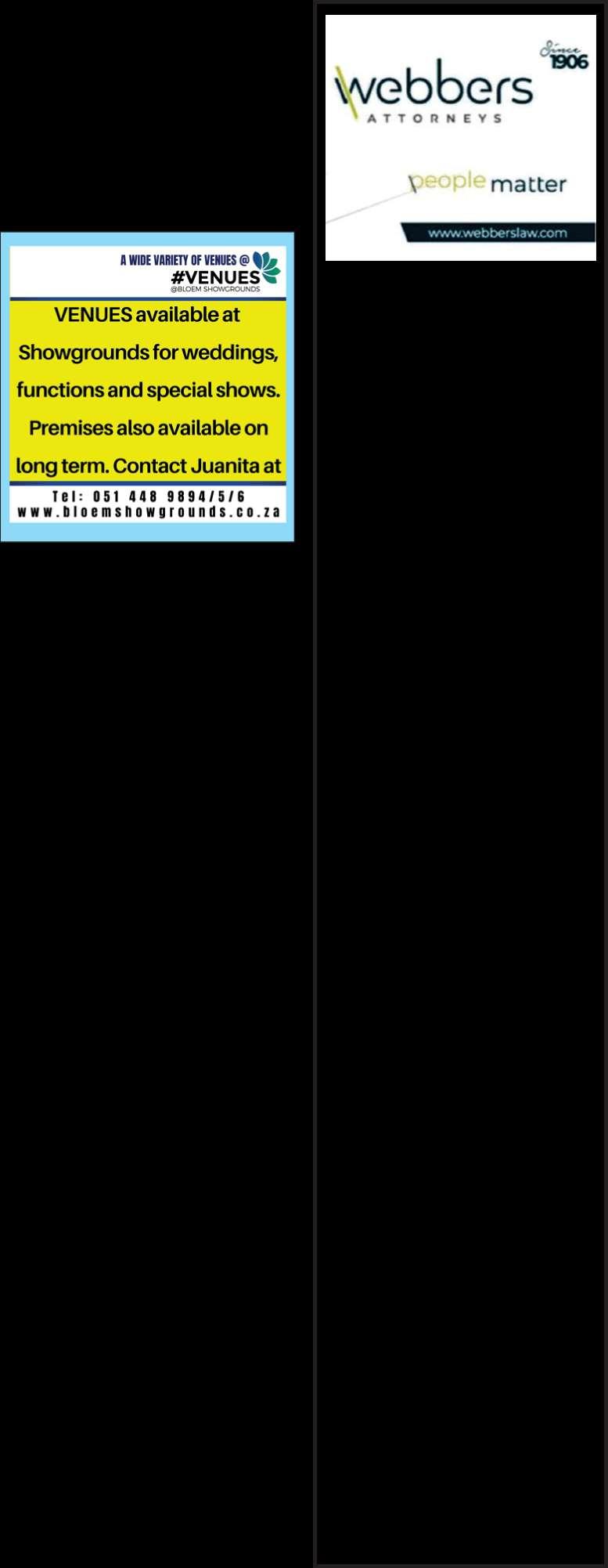 It is hereby notied for generalinformationinterms of theprovisions of Section 50 of theMangaung Metro Municipality Municipal Land UsePlanning By-laws (2021) that applications have been submittedbythe applicant Makecha Development Associates, trading as MDA pertaining to thepropertiesbelow for: